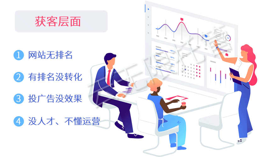 中小企业通常营销观念落后、缺乏市场调研、没有严格的营销计划化、营销手段传统、缺乏管理和营销人才、商品单一、网络营销不完善等,这都导致中小企业竞争力弱,不能很好地适应市场经济的发展。很多企业认为建个网站、做个小程序或APP就可以快速获客了,殊不知都是建设容易运营难。我们就拿网站来说,想做好网站运维需要一定的专业技术,还要配合有效的可持续的运营才能解决企业获客难题。